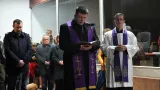 Pokraj okupljenih građana koji su molili i slušali blagoslov povodom početka došašća, stajali su i prosvjednici protiv Covid potvrda s transparentima u rukama.