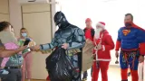 Oni su se obučeni u odijela Djeda Božićnjaka, ali i junaka iz filmova i stripova Spidermana, Supermana i Batmana spustili niz uže s krova na terasu odjela te igračkama i slatkišima darivali djecu.