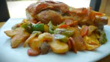 Pečena svinjska koljenica s krumpirom i povrćem