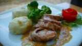 A svinjski file umotan u slaninu u kombinaciji s dizanim knedlama, slaninom, peršinom, brokulom i umakom od povrća... Što o njemu reći? Jednostavno: u slast!