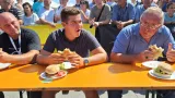 Prvi su za stol sjeli oni nešto gladniji posjetitelji, točnije njih šestorica. Zadatak im je bio u što kraćem vremenu pojesti dva hamburgera, a najbrži u toj priči bio je Bjelovarčanin Šimun, koji je oba hamburgera pojeo dok su preostali kandidati tek završavali prvi.