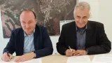 Gradonačelnik Josip Bilandžija i Zlatko Starešinčić, predstavnik novoosnovane tvrtke HEA Projekt/Foto: Krugoval Garešnica