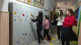 Vrijedne učenice u poslu ukrašavanja novih ormarića u hodniku škole/Foto: OŠ Veliko Trojstvo