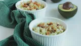 4) Kuhanu rižu ili bulgur pomiješajte s pestom od avokada te im dodajte špek (bez masnoće koja se pri pečenju iscijedila).