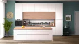 Vjerujemo da će vas posve oduševiti Prima kuhinja po mjeri Stela, s frontama u kombinaciji trenutno najpoželjnijih boja – smaragdno zelene i bijele. U dizajnu kuhinja ove godine vladaju tople, neutralne palete boja koje umiruju naša osjetila, a kreću se od kremasto bijele do tamnozelene boje. Elegantan dizajn, mnogo opcija za odlaganje, ujednačena radna ploča i pozadina, moderni kuhinjski aparati, dodatak kuhinjskog otoka ili barskog stola, ovo su najpopularnije smjernice dizajna od kojih se ne odustaje, a sve ih možete pronaći u Prima kuhinjama.