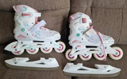 Sustav 2-u-1: Najveća prednost ovog modela. Zamjenjivo podvozje omogućuje da se ljeti koriste kao role, a zimi kao klizaljke.