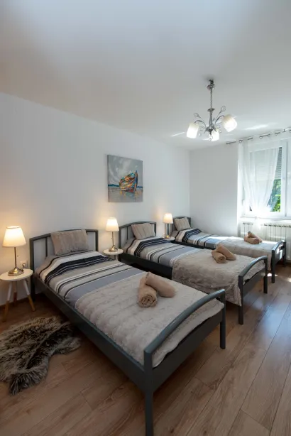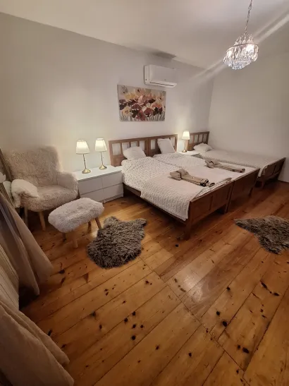 Kuća ima 2 trokrevetne sobe sa mogućnošću spajanja kreveta po želji. Idealna je za druženja, obitelji s djecom i s kućnim ljubimcima (pet friendly house). Kuća ima centralno plinsko grijanje.