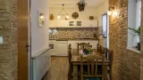 Centralno mjesto kuće je dnevni boravak povezan sa blagovaonicom i kuhinjom. Sjedeća kutna garnitura u dnevnom boravku može poslužiti kao dodatna dva ležaja. Kuhinja sadrži sve što je potrebno za pripremu raznih jela i pića, perilica suđa, hladnjak sa zamrzivačem, kuhalo za vodu, mikrovalnu pećnicu, pećnicu sa indukcijskom pločom za kuhanje, sav pribor za pripremu i usluživanje jela.