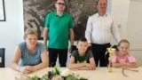 Grad Garešnica uplatio je za Renatin put 5000 kuna. Na fotografiji su Renata Hranilović, njezina majka i njezinu obitelj danas je primio i gradonačelnik Garešnice Josip Bilandžija koji je također obećao pomoć/Foto: Privatni album
